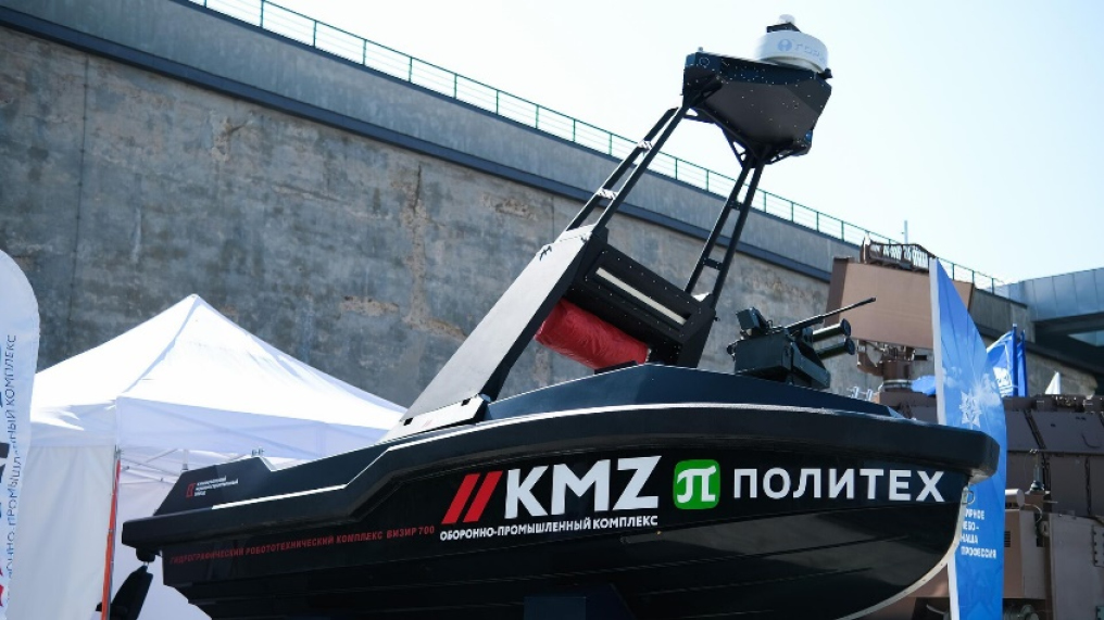 Рис. 2. Катер-дрон на базе «Визира» от Кингисеппского машиностроительного завода (Холдинг KMZ может поставить армии катера-дроны типа «Визир» // РИА Новости. 11.09.2023. [Электронный ресурс]. URL: https://ria.ru/20230911/katera-1895436469.html).