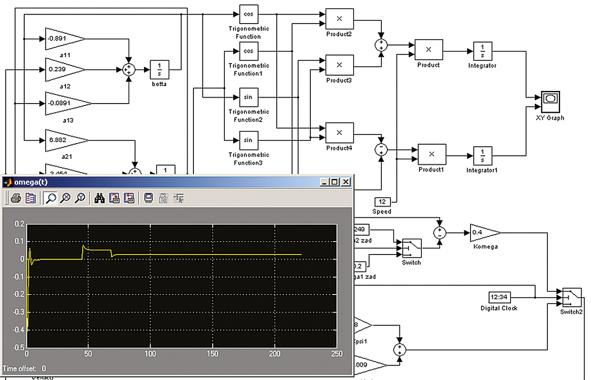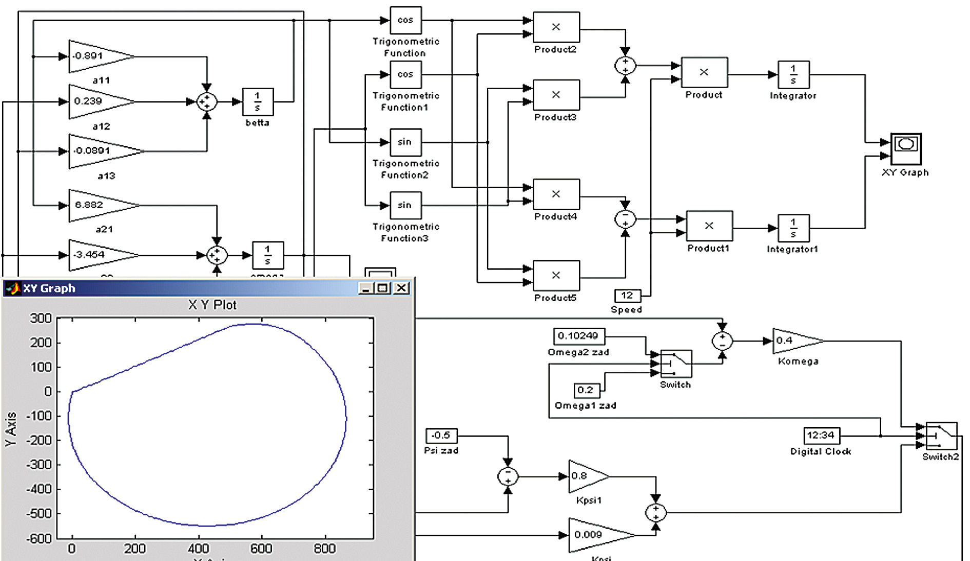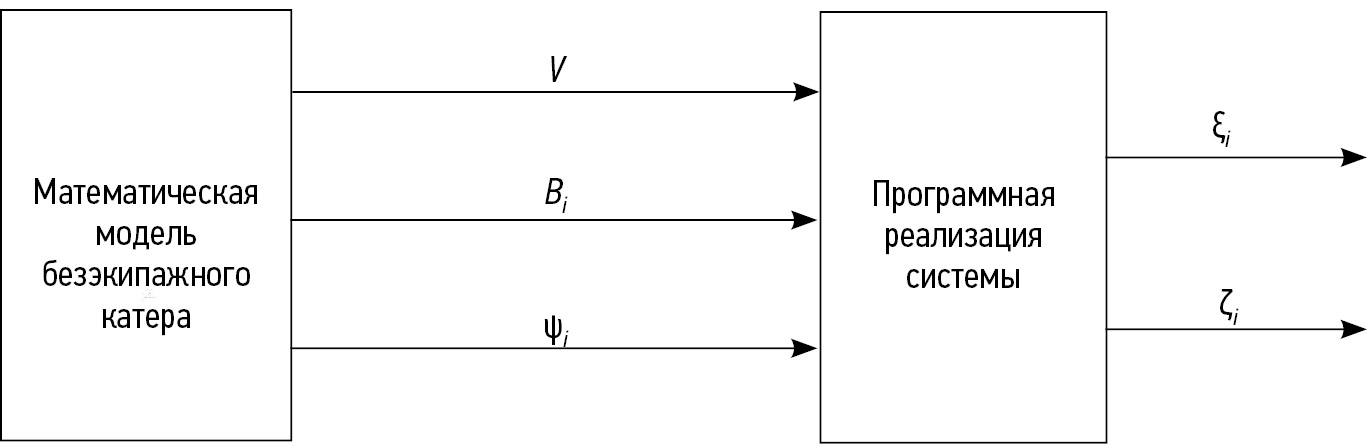 Рис. 4. Структурная схема моделирования управляемого движения безэкипажного катера с использованием линейных функций.