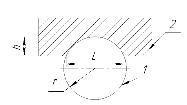 Рис. 3. Эскиз пары трения: h — глубина сегмента, L — длина хорды, r — радиус диска.