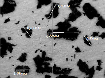 Примеры замера лунок износа образцов приведены на рис. 6, 7.