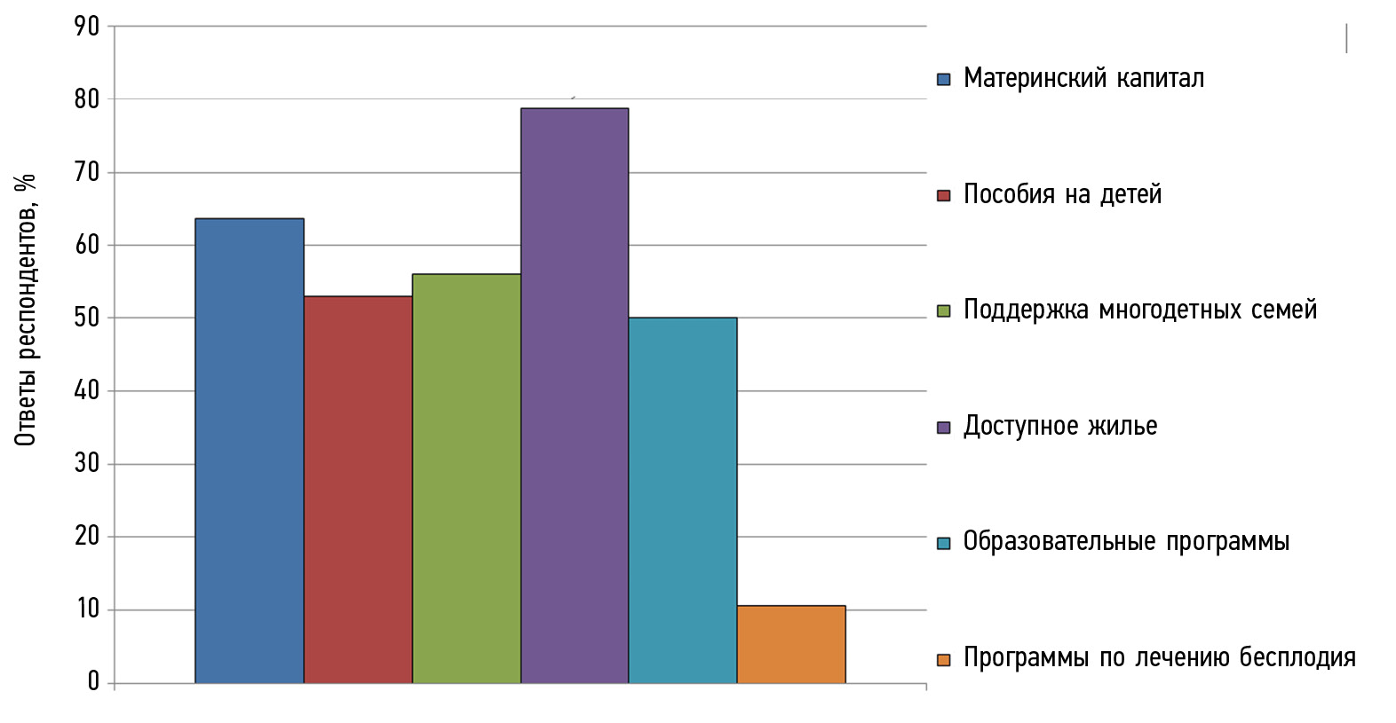 Рис. 3. Меры государственной поддержки, которые наиболее важны для улучшения демографической ситуации (ответы респондентов), %