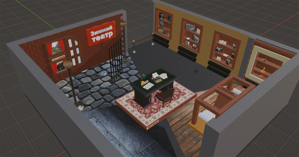 Цель — на основании чертежной документации и физического макета создать визуализацию экспозиции «Морозовский зал» в формате трехмерной модели с эффектом полного погружения, для его дальнейшего масштабирования и виртуализации за счет устройств дополнительной реальности.