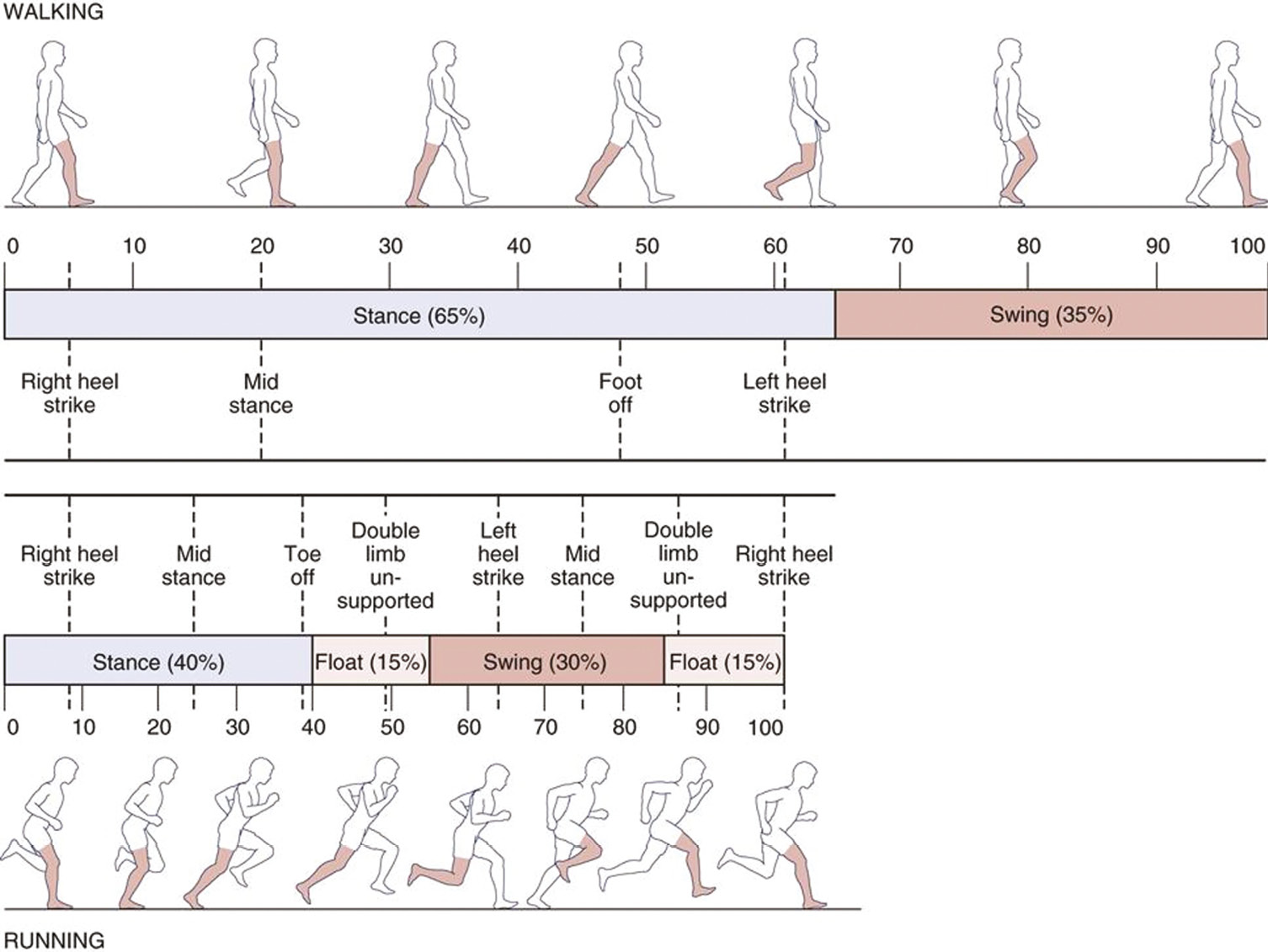 According to biomechanics, walking and running differ in parameters such as step length, step duration, speed, and the amplitude of limb movements. Nevertheless, both are rhythmic forms of human motion, characterized by coordinated oscillatory movements and bilateral symmetry with a phase shift of half a period (fig. 1).