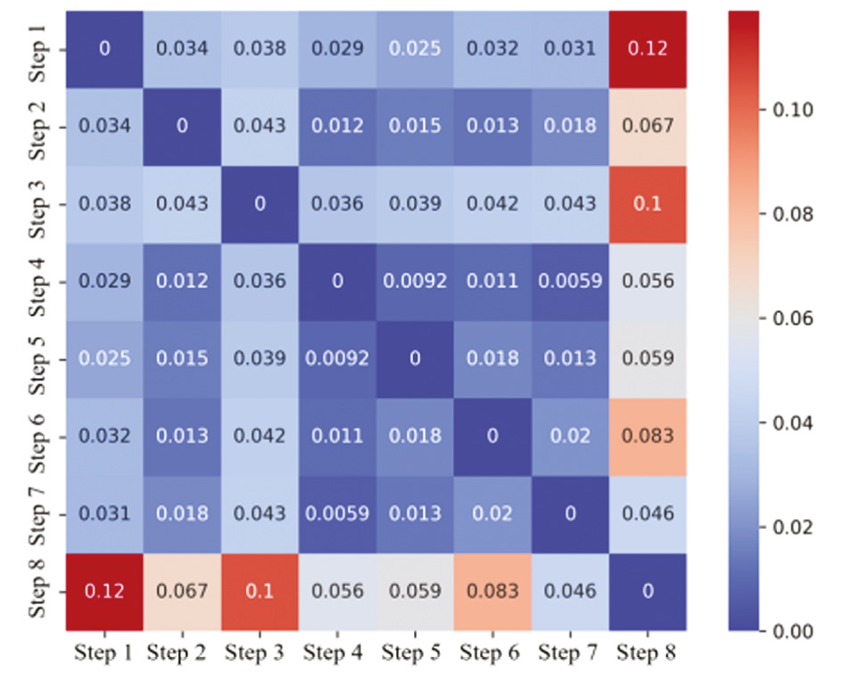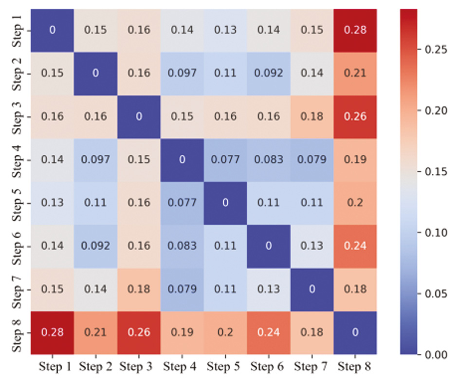 Fig. 2. Similarity matrix between steps (metric RMSE)