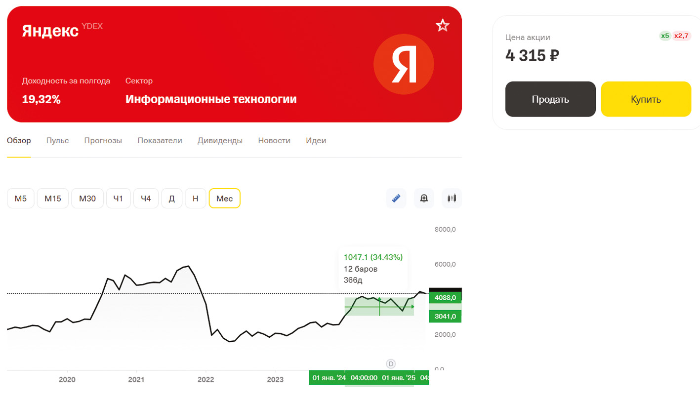 Рис. 2. Стоимость акций компании «Яндекс»