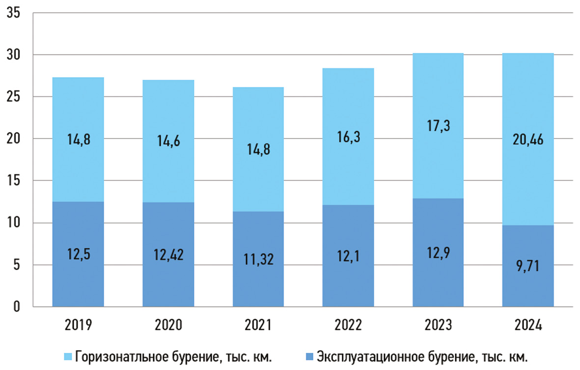 Темпы роста объемов горизонтального бурения (рис. 2) указывают на стремление российских нефтегазовых компаний оптимизировать затраты в ситуации увеличения доли трудноизвлекаемой нефти, например, применяя гидроразрыв пласта, что увеличивает добычу на зрелых месторождениях Западной Сибири на 8–12 % [2].